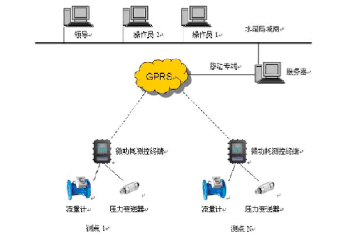×ÔÀ´Ë®³§µ÷¶ÈÖÐÐÄ¡¢¸÷Ö°Äܲ¿ÃÅÖ®¼äÊý¾ÝͨÐÅÔÚ¾ÖÓòÍøÄÚÍê³É£»¹ÜÍø²âµãÓë×ÔÀ´Ë®³§µ÷¶ÈÖÐÐÄÖ®¼ä²ÉÓÃGPRSÎÞÏßͨÐÅ¡£