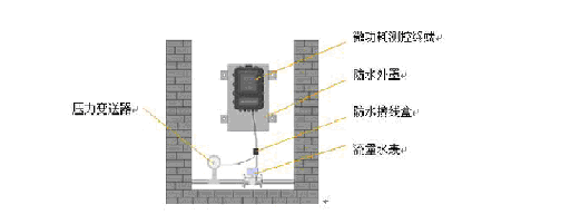 ½«·ÀË®ÍâÕÖ°²×°ÔÚ¼à²â¾®¾®±ÚÉÏ£¬Î¢¹¦ºÄ²â¿ØÖÕ¶Ë·ÅÖÃÔÚ·ÀË®ÕÖÄÚ¡£Ñ¹Á¦±äËÍÆ÷ÐźÅÏß¡¢Ë®±íÐźÅÏß½ÓÔÚ΢¹¦ºÄ²â¿ØÖÕ¶Ë×Ô´øµÄ·ÀË®½ÓÏߺÐÉÏ¡£