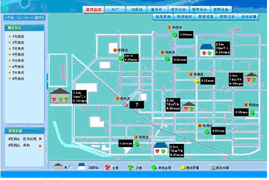 ¡ô¼à²âÕû¸ö³ÇÊй©Ë®¹ÜÍø²âµãµÄѹÁ¦¡¢Á÷Á¿¡¢Á÷Ïò¡¢Ë®ÖÊÐÅÏ¢¡£ ¼à²â¸÷Ë®³§³ö³§Á÷Á¿¡¢